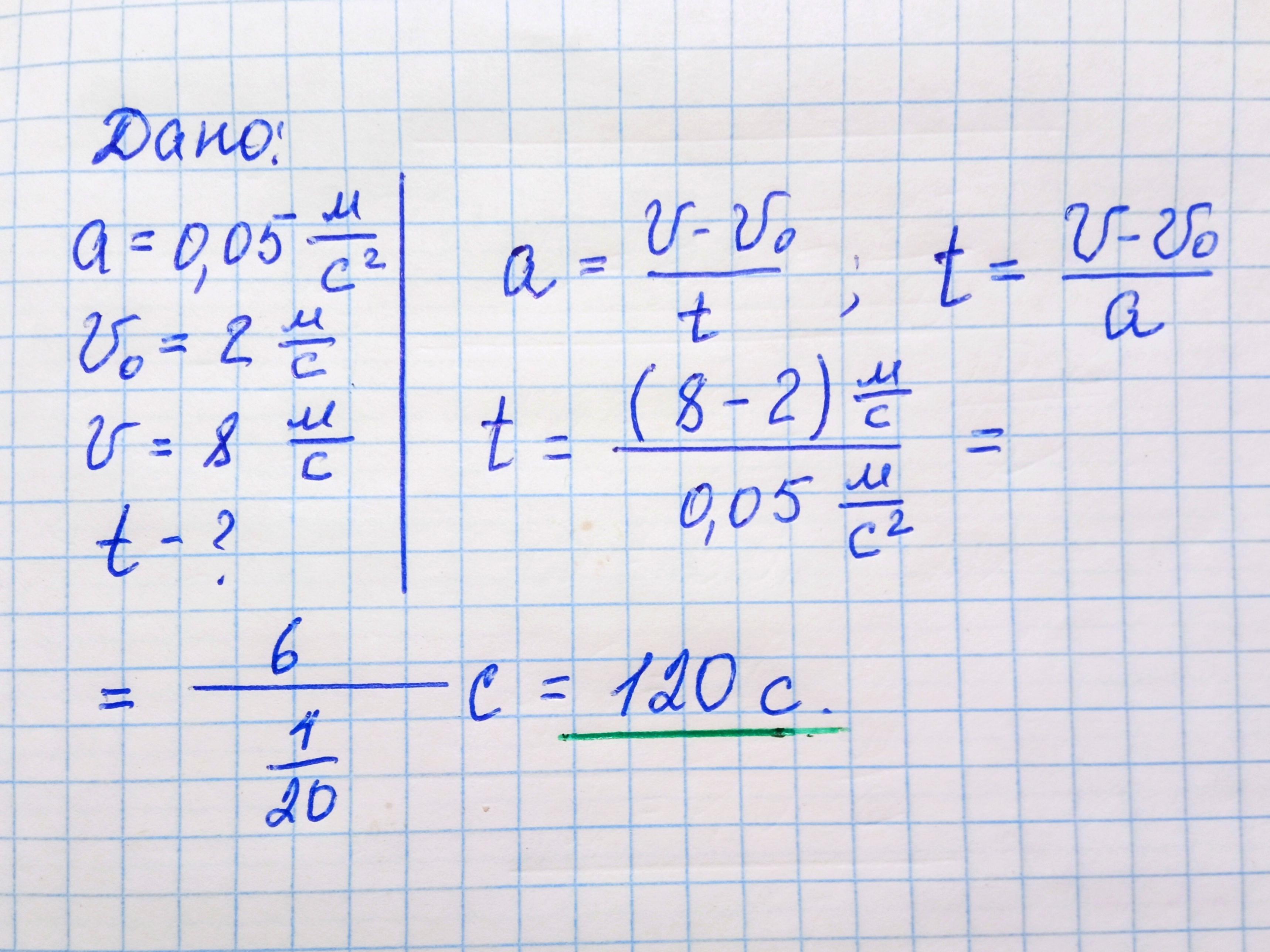 \[t = \frac{8 м/с - 2 м/с}{0,05 м/с²} = \frac{6 м/с}{0,05 м/с²} = 120 секунд.