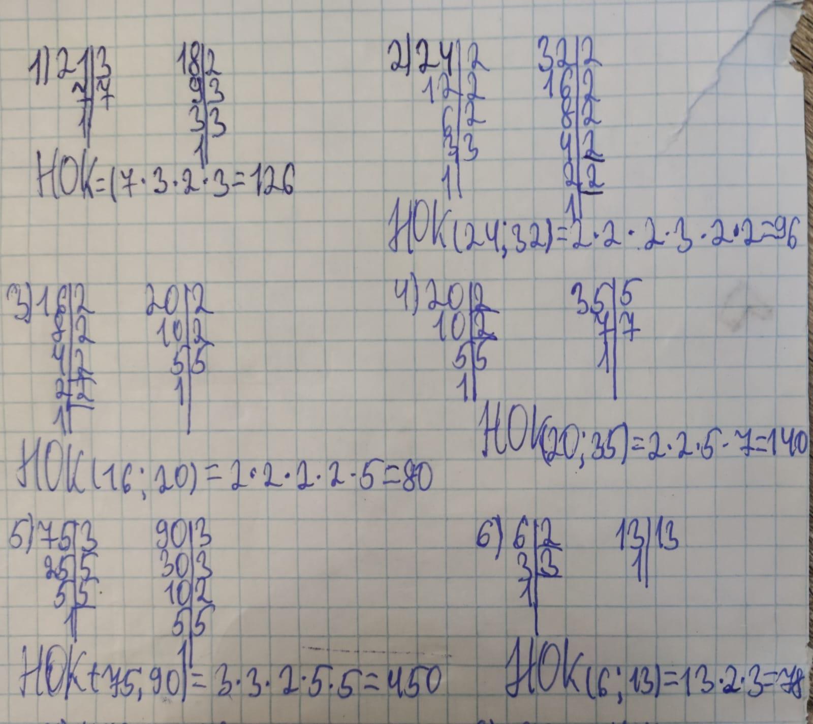 299. Найдите наименьшее общее кратное чисел, разложив их на простые множители: 1) 21 и 18; 2) 24 и 32; 3) 16 и 20; 4) 20 и 35; 5) 75 и 90; 6)/6 и 13; 7) 14 и 18; 8) 28 и 42; 9)/21 и 33; 10) 12, 30 x 75; 11) 15, 42 x 105; 12) 21, 28 и 35. 10 С