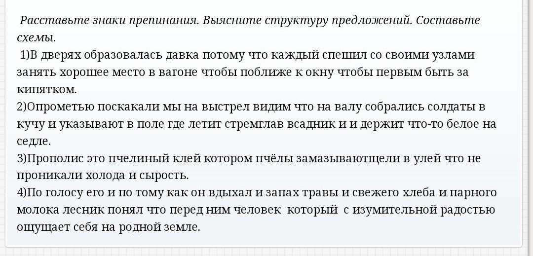 4)По голосу его, и потому как он отдыхал, из запах травы свежего хлеба и парного молока понял, что перед ним человек, который с изумительной радостью ощущает себя на родной земле.