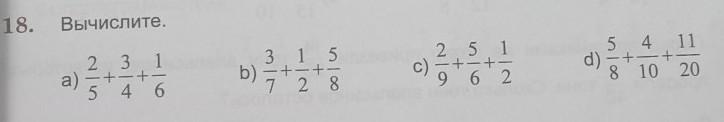 2/5 + 3/4 + 1/6 = 24/60 + 45/60 + 10/60 =