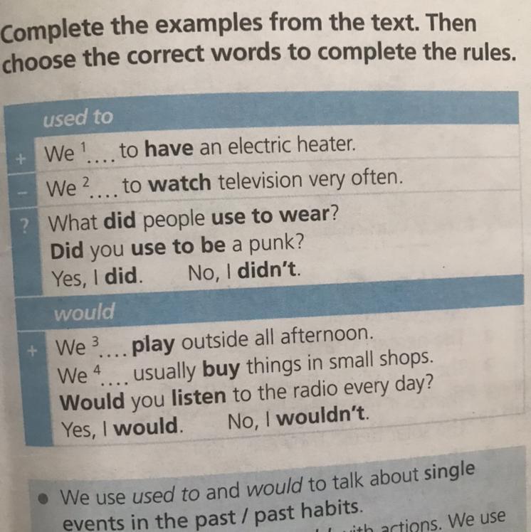 1 Complete the examples from the text. Then choose the correct words to complete the rules.used to