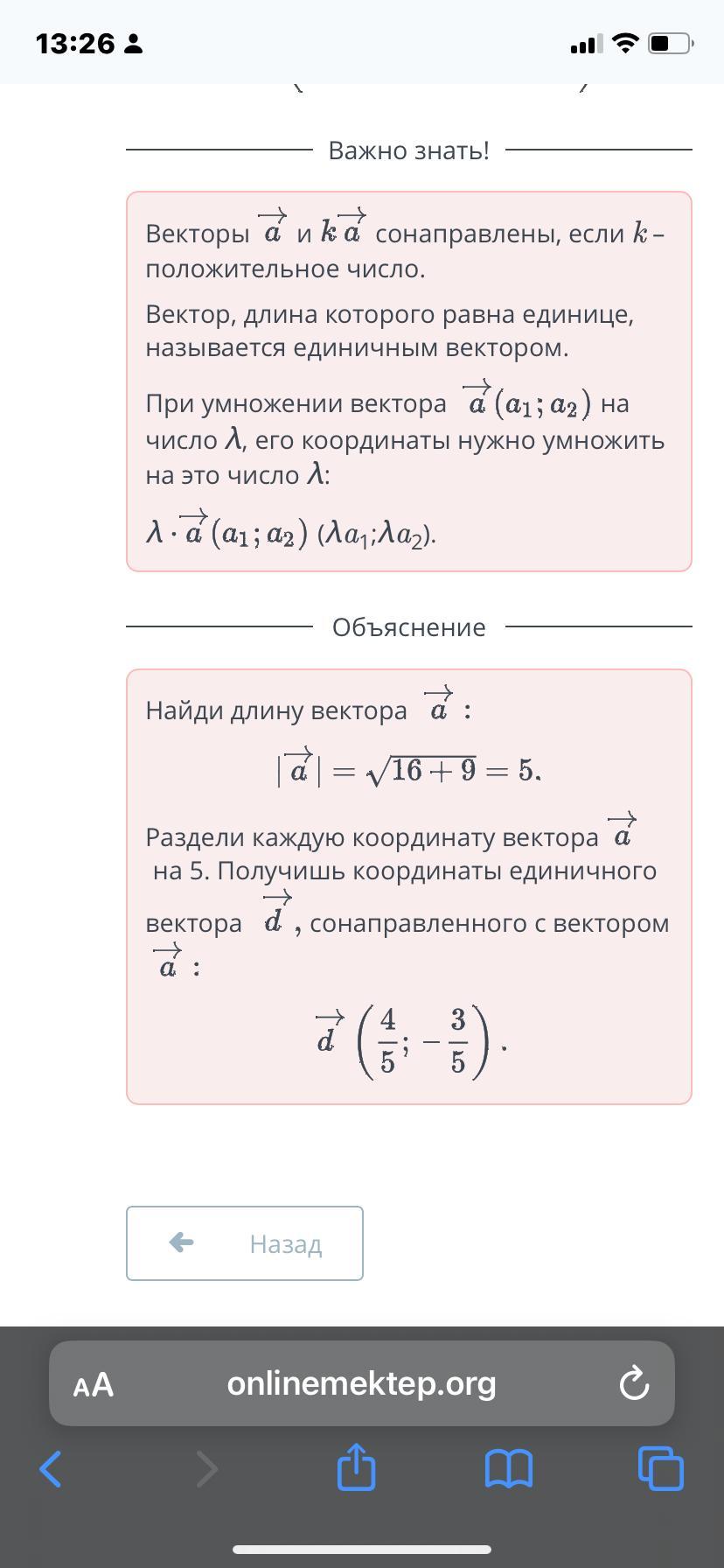 Дан вектор а (4;-3). Найди координаты единичного вектора d, сонаправленного вектору а