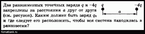 это означает, что заряд в -4q должен находиться на расстоянии а от заряда q симметрично заряду -4q.