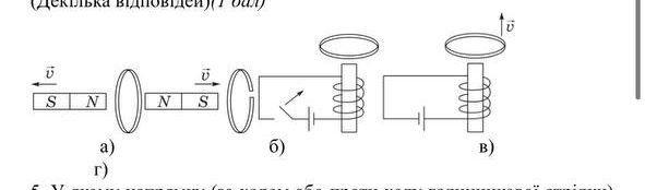 4. У яких випадках у провідному кільці виникає індукційний струм, (Декілька відповідей)