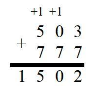 503 в 8 системе счисления+777 в 8 системе счисления=1502 в 8 системе счисления