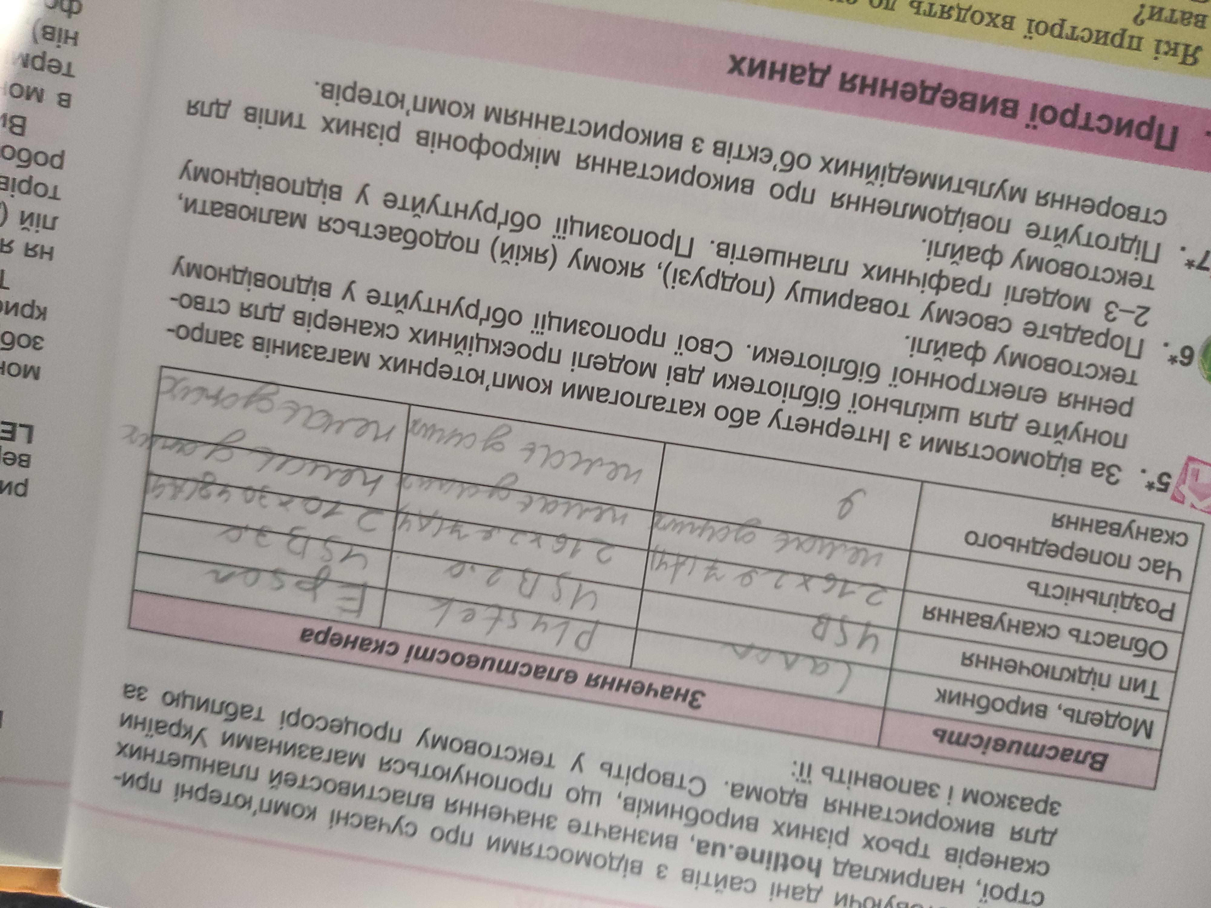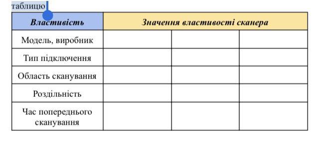 Використовуючи дані сайтів з відомостями про сучасні комп’ютерні пристрої, наприклад hotline.ua, визначте значення властивостей планшетних сканерів трьох різних виробників, що пропонуються магазинами України для використання вдома. Заповніть таблицю: