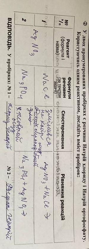У пробірці №1 Білий осад хлориду срібла випадає у пробірці, де знаходиться хлорид натрію.