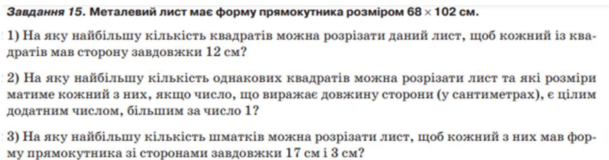 1) Щоб визначити, на яку найбільшу кількість квадратів розміром 12 см х 12 см можна розрізати лист, поділимо площу листа на площу одного квадрата: