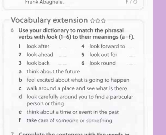 Use your dictionary to match the phasal verns with(1-6) to their meanings(a-f)
