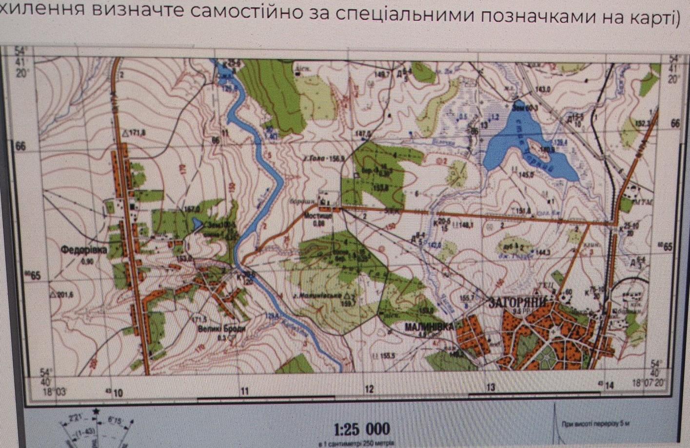 обчисліть магнітний азимут якщо дійсний азимут становить 120° (магнітне схилення визначити самостійно за спеціальними позначками на карті)