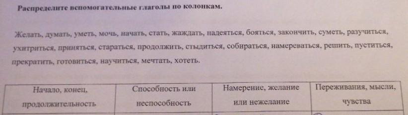 2) Уметь ; суметь ; разучиться ; стараться; хотеть ; ухитриться ; прекратить ; готовиться ; научиться
