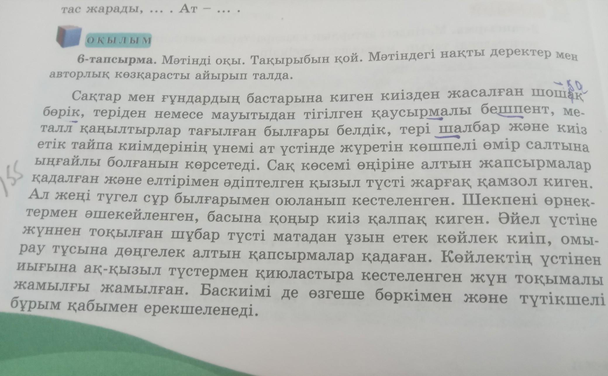 Мәтінді оқы. Тақырыбын қой. Мітіндегі нақты деректер мен Авторлық көзқарасты айырып талда.