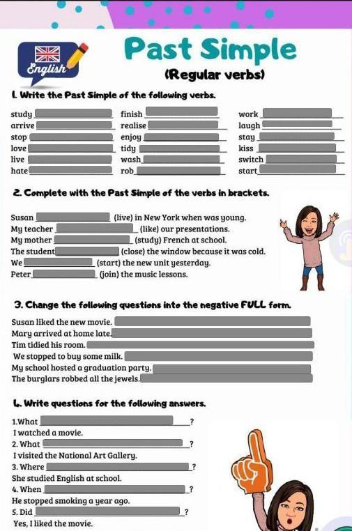 3. Susan didn’t like the new movie. Mary didn’t arrive at home late. Tim didn’t tidy his room. We didn’t stop to buy some milk. My school didn’t host a graduation party. The burglars didn’t rob all the jewels.