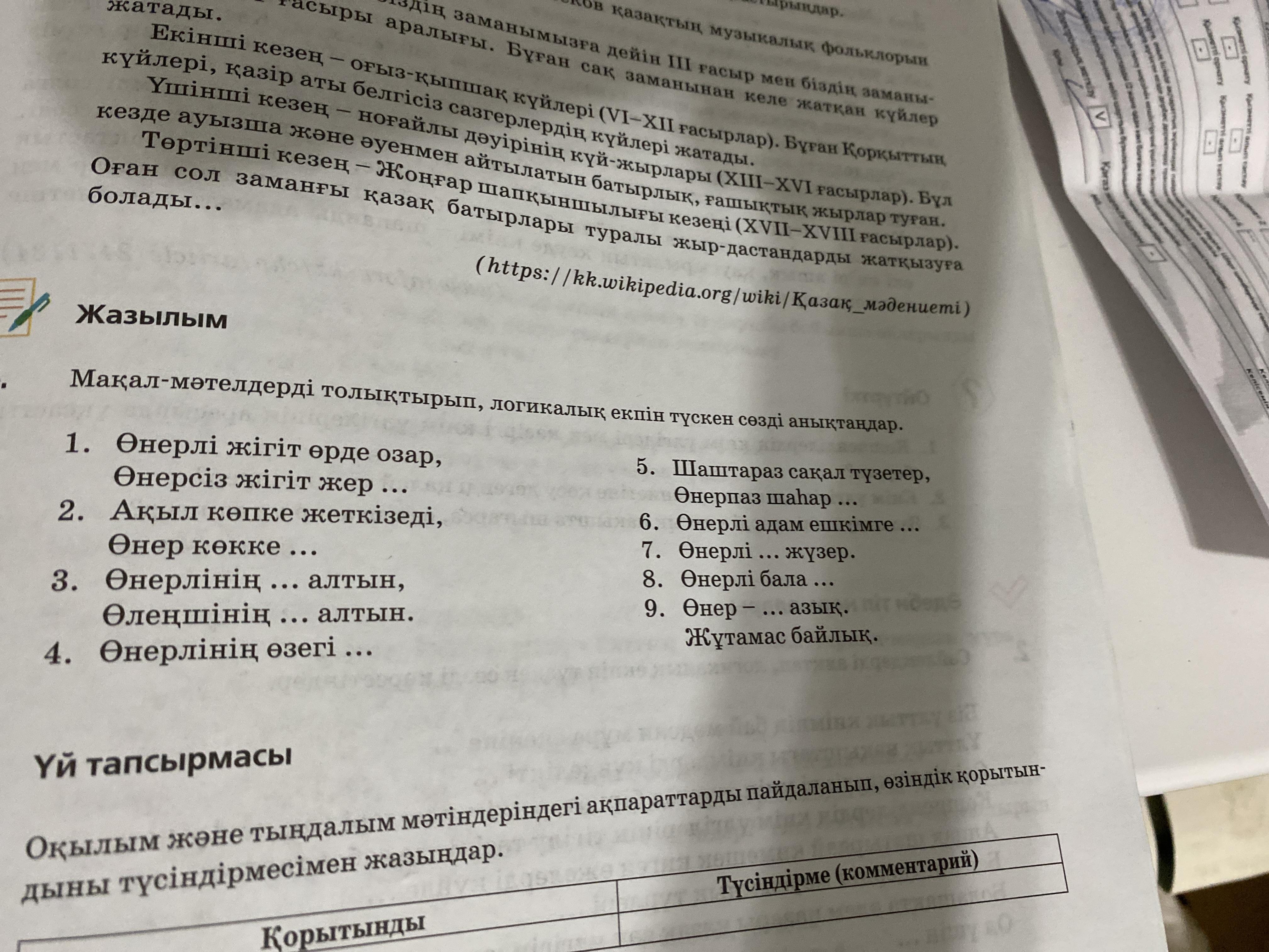 1. Өнерлі жігіт өрде озар. Өнерсіз жігіт жер қайтарып тұр.