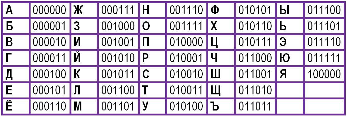 Используя приведённую ниже кодовую таблицу, определи, сколько бит отводится на кодирование слова «справедливость».