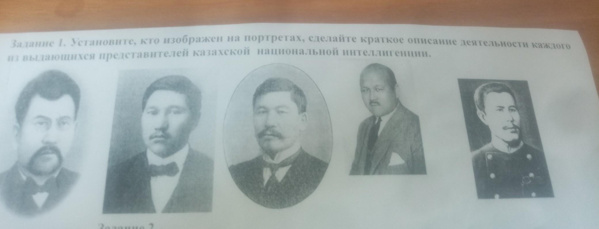 на портретах, сделайте краткое описание деятельности каждого Задание 1. Установите, кто изображен из выдающихся представителей казахской национальной интеллигенции.
