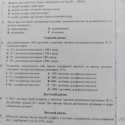 **5. Установіть відповідність між масою сульфатної кислоти і масою розчину з масовою часткою розчиненої речовини 10%**