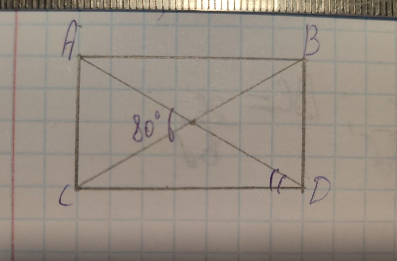У прямокутнику ABCD ∠AOC = 80° . ∠ADC - ?