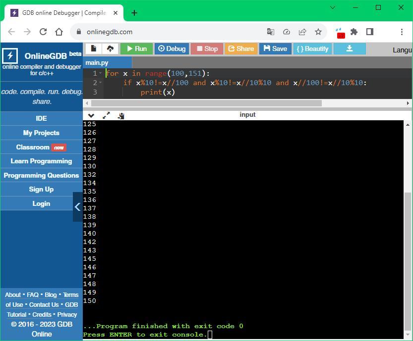 2. Надрукуйте всі числа від 100 до 150 у яких всі три цифри різні.