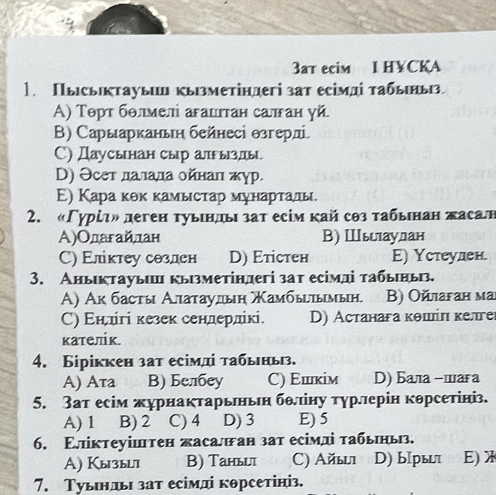 1. Пысықтауыш кызметіндегі зат есiмдi табыныз.
