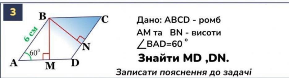 Объяснение: вм перпендикуляр делит сторону на равные части получается 3 на 3 это можно ещё доказать тем что угол абм равна 30 а катет расположенный напротив 30 равна половине гипотенузы. То есть оставшаяся часть а это мд равна 3 и дн тоже потому что треугольники дбм дбн схожи и у них общаяя гипотенуза. Тут тоже выполняется то правило с 30 град.