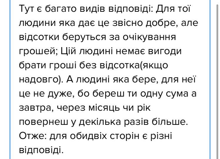 як ви гадаєте, надання грошей у використання під відсоток - це добро чи зло? (аргументуйте відповідь)