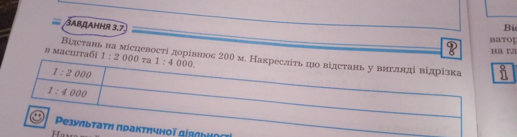 так як в нас подана відстань на місцевості в метрах на потрібно буде перевести метри в сантиметри це в нас вийде 20000 см і що б знайти скільки сантиметрів нам потрібно накреслити треба відстань на місцевості поділити на масштаб тобто 2000 і так в нас вийшло 10 см