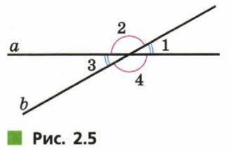 при пересечении двух прямых образуется 4 угла ,две пары вертикальных углов <1=<3,<2=<4 ,и смежные углы ,их сумма 180 °, например ,<1+<2, пусть <1=<3=45°,тогда 180 -45=135 (°)-<2,<4.