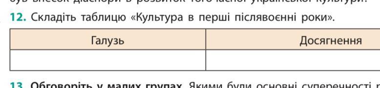 Складіть таблицю «Культура України в перші післявоєнні роки». (після Другої Світової)