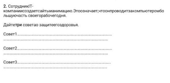 Ответ: 1. Делать зарядку каждые 30 минут.