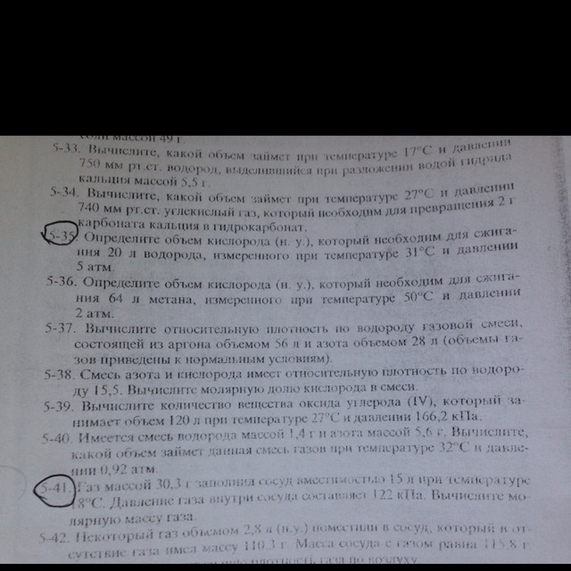 Задача 5-41 решается через уравнение Менделеева-Клайперона, в условии даны все величины, осталось только подставить и посчитать на калькуляторе. Температуру только в Кельвины надо перевести.