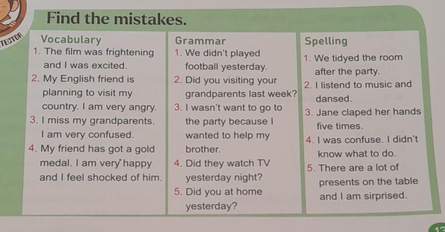 I've found the mistakes in your sentences. Here are the corrected versions: