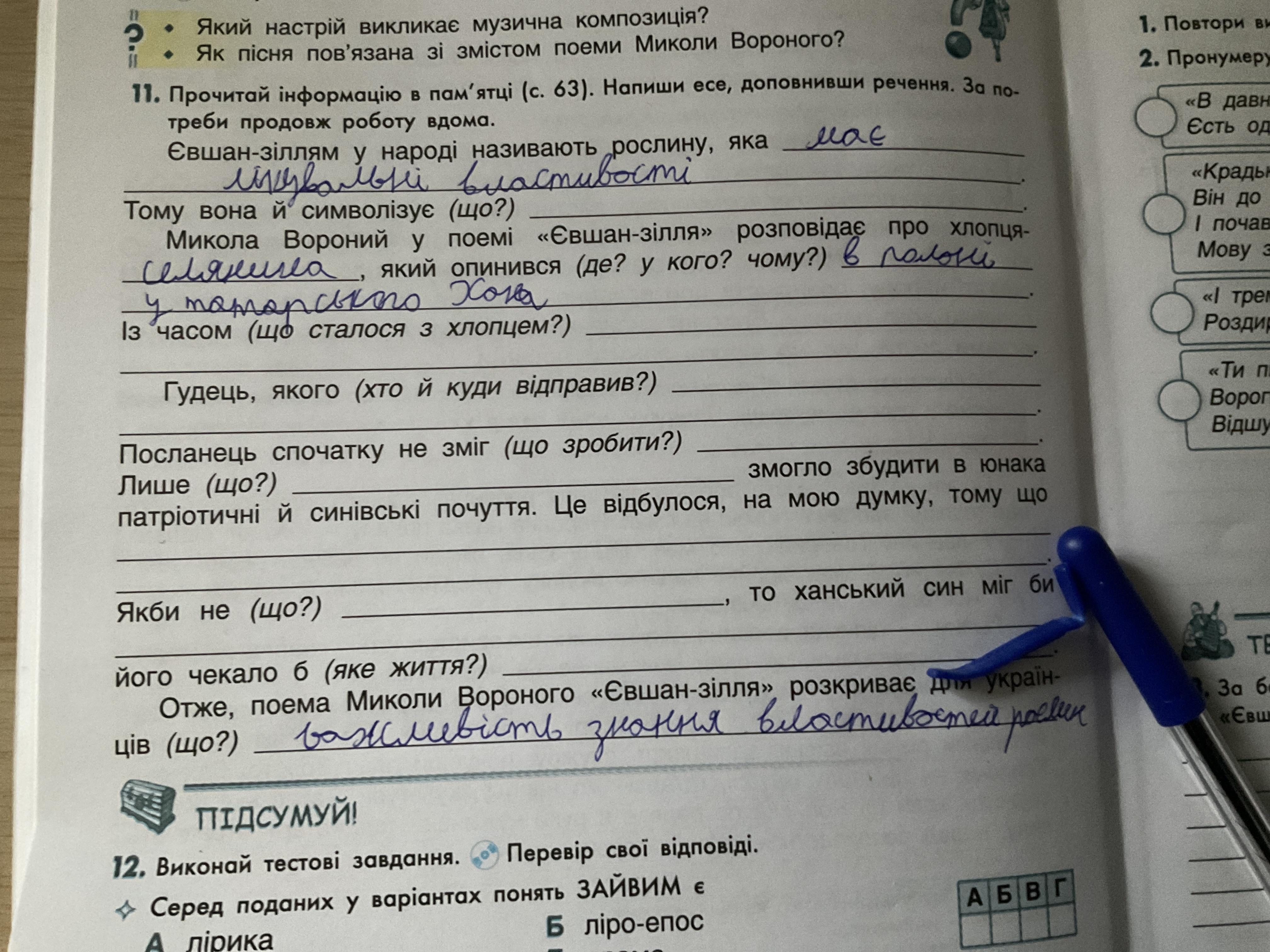 Прочитай інформацію в памʼятці (с. 63). Напиши есе, доповнивши речення. За по-