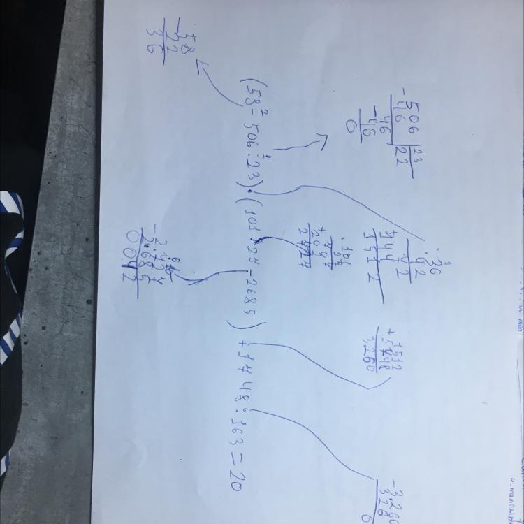 Ответ: ((58 - 506 : 23)•( 101•27-2685)+1748):163 =