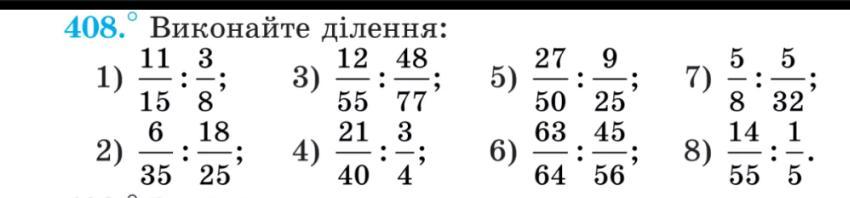 1) 11/15 : 3/8 = 11/15 * 8/3 = 88/45 = 1 43/45