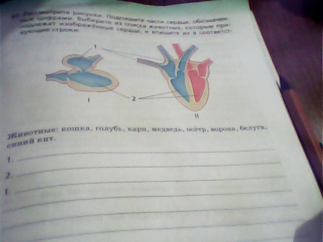 рассмотрите рисунки . подпишите части сердца . обозначенные цифрами. выберите из списка животных, которым принадлежат изображенные сердца и впишите их в соответствующие строки