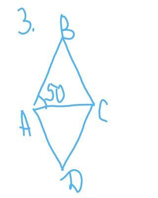 3) Діагональ ромба утворює з його стороною кут 50 градусів.Знайдіть кути ромба.
