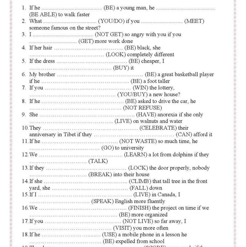 15.If I lived (LIVE) in Canada, I would speak (SPEAK) English more fluently