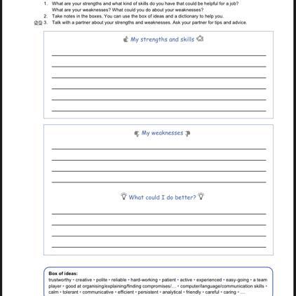 3. Talk with a partner about your strengths and weaknesses. Ask your partner for tips and advice.