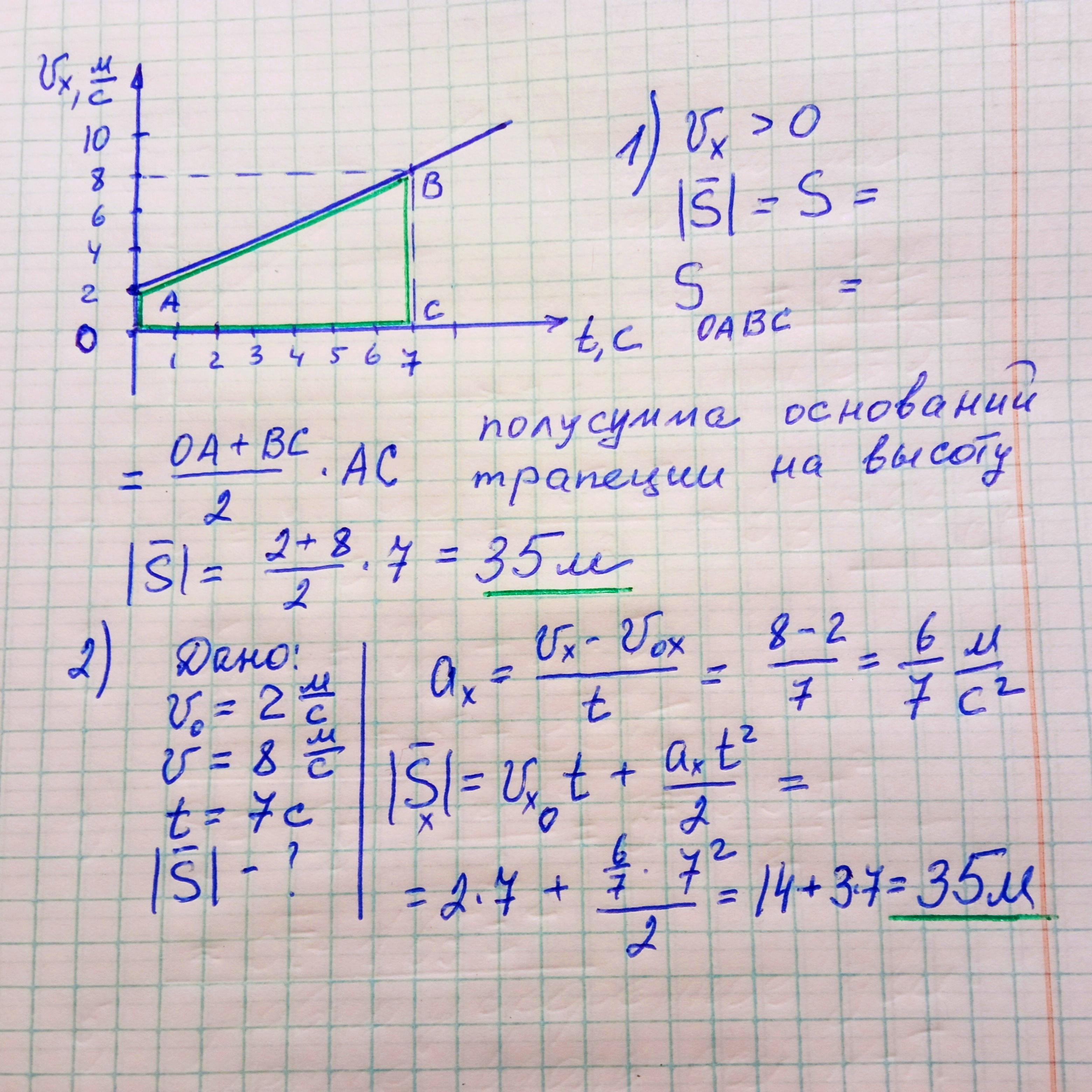 Выбирайте способ. При перемещении вдоль оси координат путь и перемещение равны. Кроме того это площадь фигуры под графиком скорости. Это нужно знать))