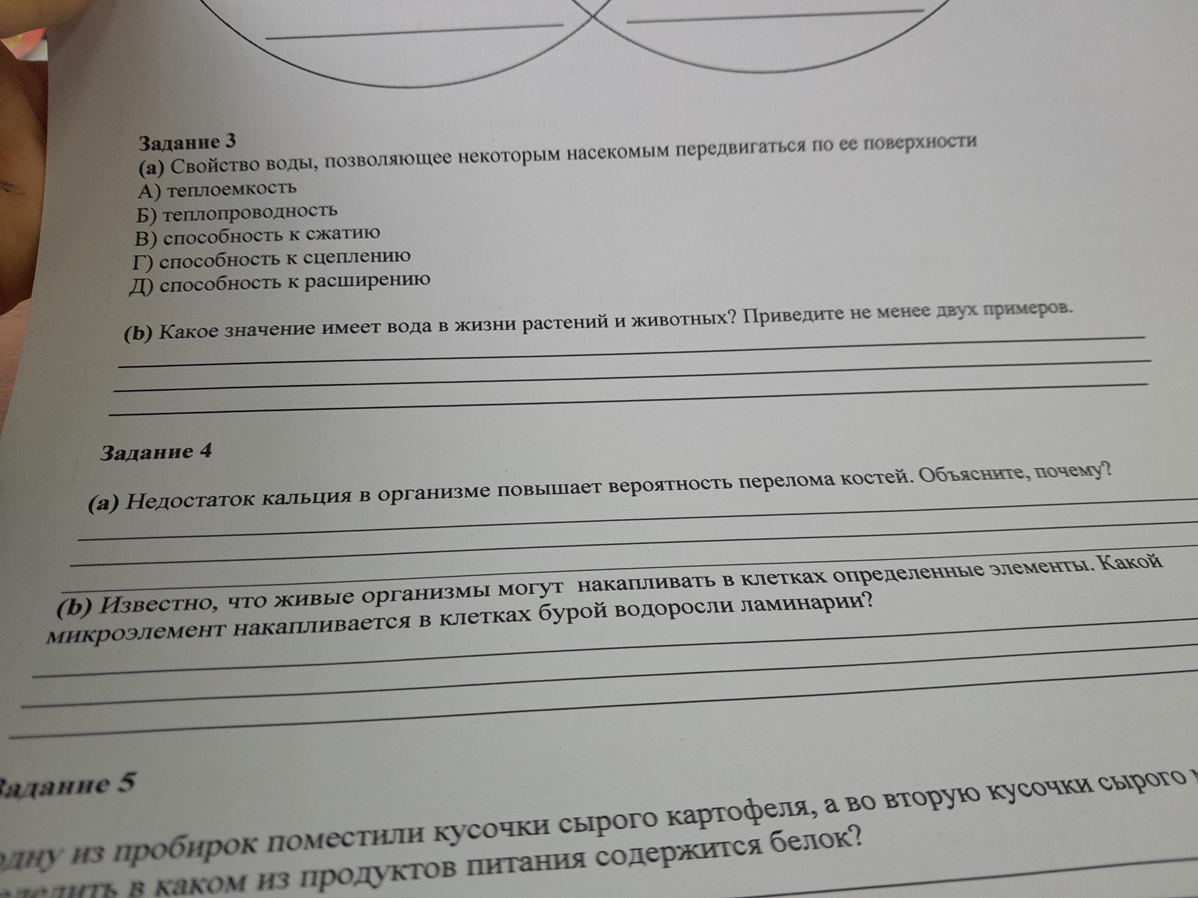 (ь) Какое значение имеет вода в жизни растений и животных? Приведите не менее двух примеров. Задание 4 (а) Недостаток кальция в организме повышает вероятность перелома костей. Объясните, почему? (b) Известно, что живые организмы могут накапливать в клетках определенные элементы. Какой микроэлемент накапливается в клетках бурой водоросли ламинарии?