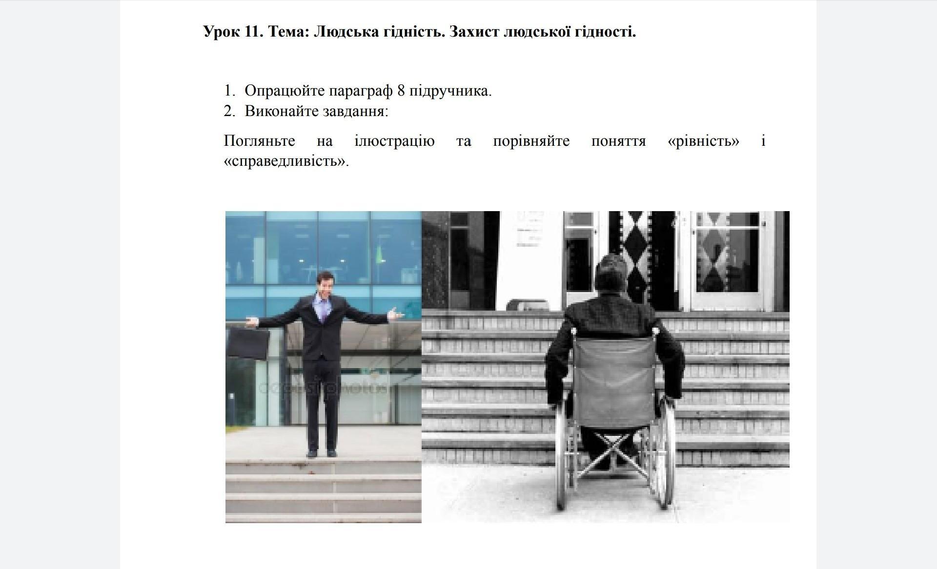 Рівність це коли все для усіх людей однакове, але ми не повинні забувати про справедливість. Адже не всі люди можуть ходити.