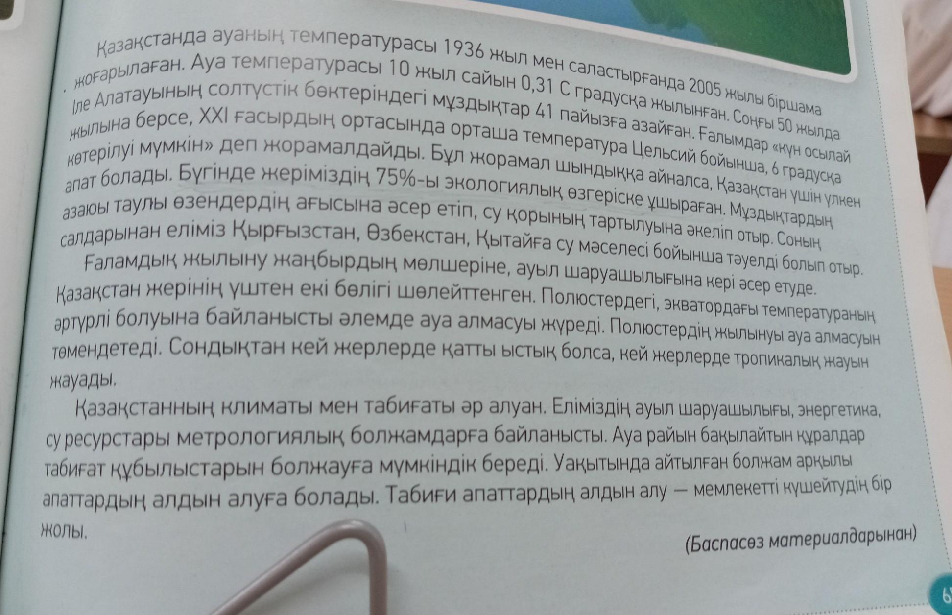 1: қазақстаның климаты мен табиғаты не үшін әр алуан болып ауысып отырады?
