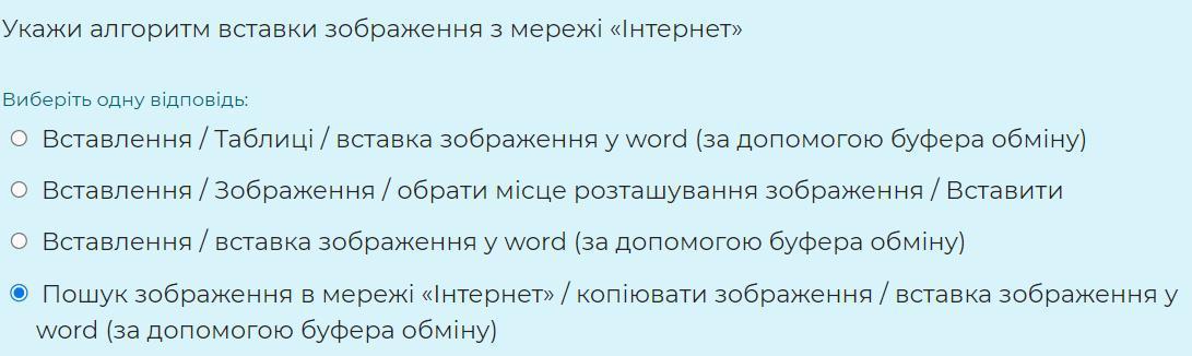 Укажи алгоритм вставки зображення з мережі «Інтернет»