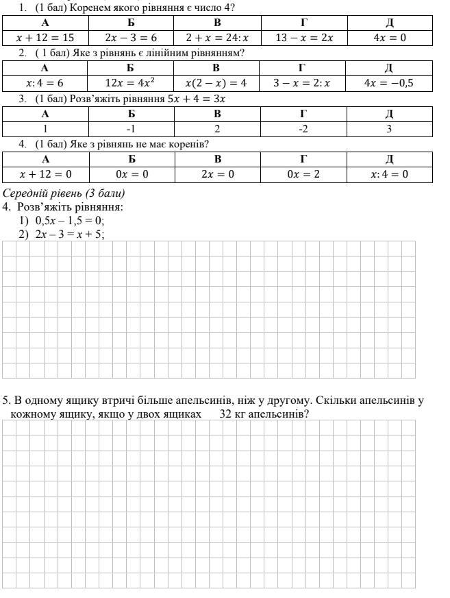 5. Нехай кількість апельсинів у першому ящику - x кг, а у другому ящику - 3x кг. За умовою задачі складаємо і розв'язуємо рівняння:
