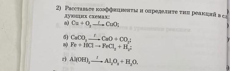 2) Расставьте коэффициенты и определите тип реакций в сл