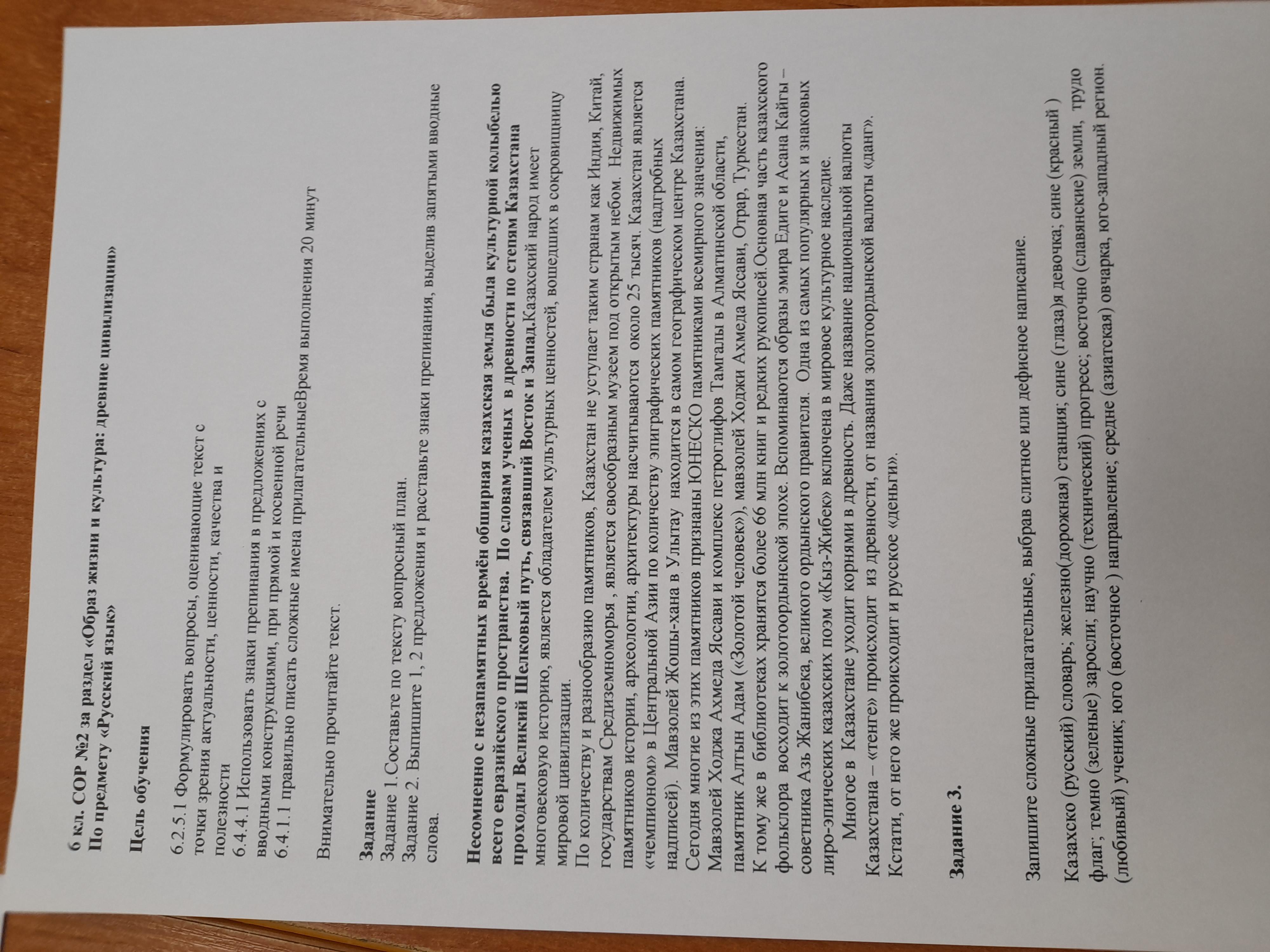 Несомненно (вводное слово), с незапамятных времен обширная казахская земля была культурной колыбелью всего евразийского пространства. По словам ученых(вводная конструкция), в древности по степям Казахстана проходил Великий Шелковый путь, связавший восток и запад.