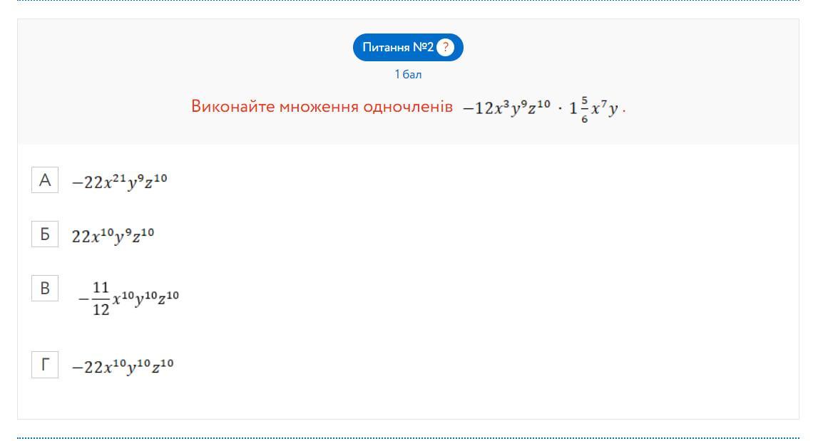 В)- 11/12 * x ^ 10 * y ^ 10 * z ^ 10 (- 11x ^ 10 * y ^ 10 * z ^ 10)/12