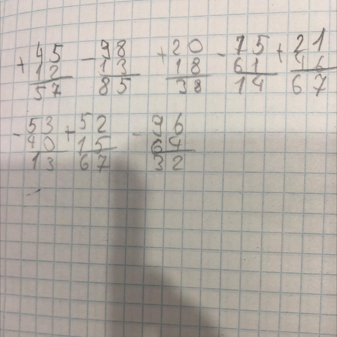 1) 57 2) 85 3) 38 4) 14 5) 67 6) 13 7) 67 8) 32