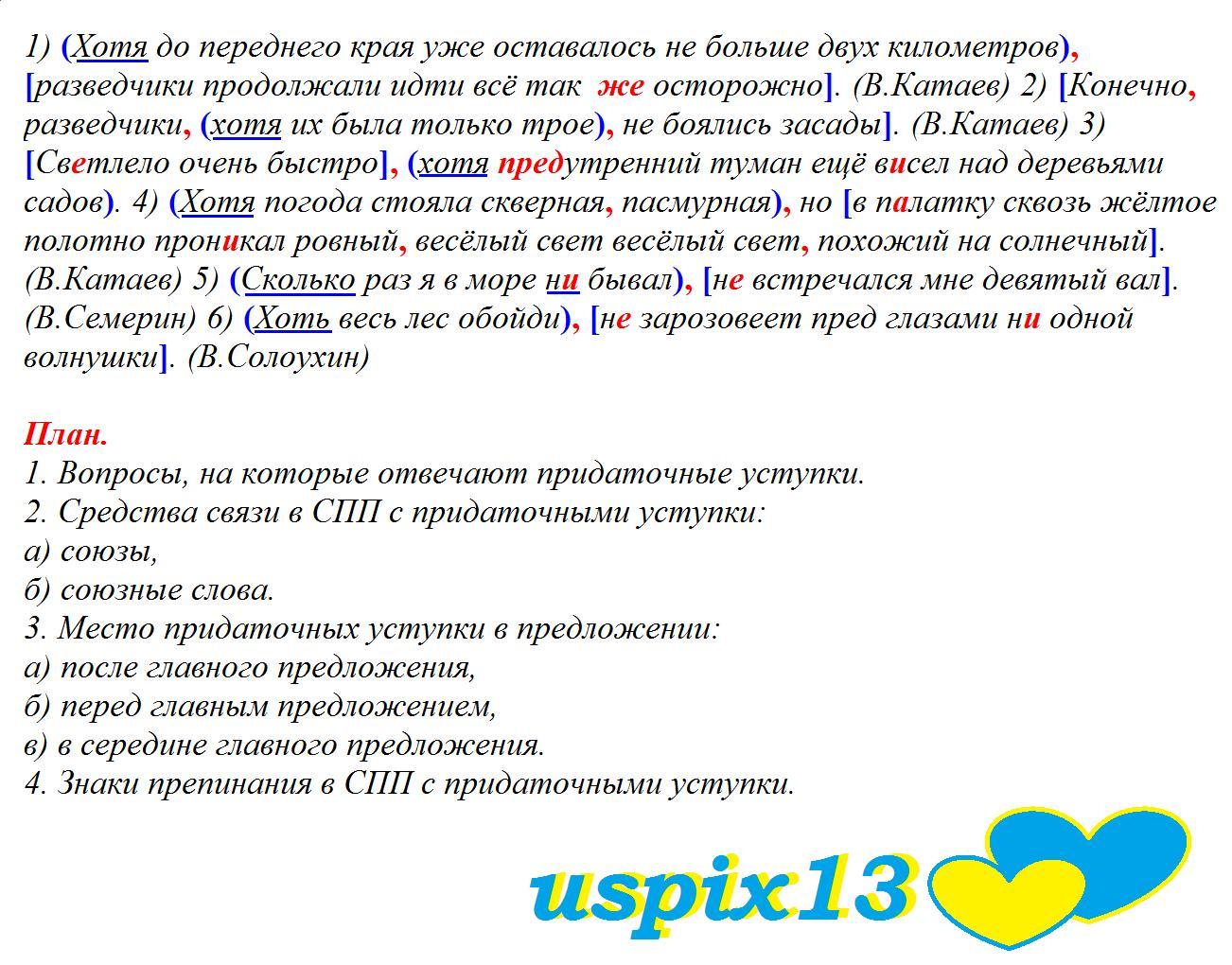 1) Хотя до переднего края уже оставалось не больше двух километров разведчики продолжали идти всё так(же) осторожно. (В.Катаев) 2) Конечно разведчики хотя их была только трое не боялись засады. (В.Катаев) 3) Св...тлело очень быстро хотя (пред)утренний туман ещё в...сел над деревьями садов. 4) Хотя погода стояла скверная пасмурная но в п..латку сквозь жёлтое полотно прон...кал ровный весёлый свет похожий на солнечный. (В.Катаев) 5)Сколько раз я в море (н...) бывал (н...) встречался мне девятый вал. (В.Семерин) 6) Хоть весь лес обойди (н...) зарозовеет пред глазами (н..) одной волнушки. (В.Солоухин)